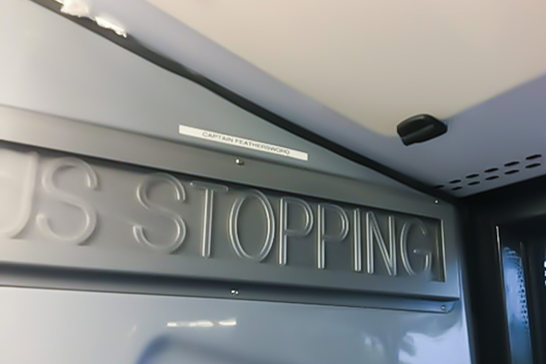 This pic appeared of a ‘nickname’ on one of our busses ‘Captain Feathersword’ . Is this official, do all busses have a nickname or does someone just have a label maker getting around on public transport?